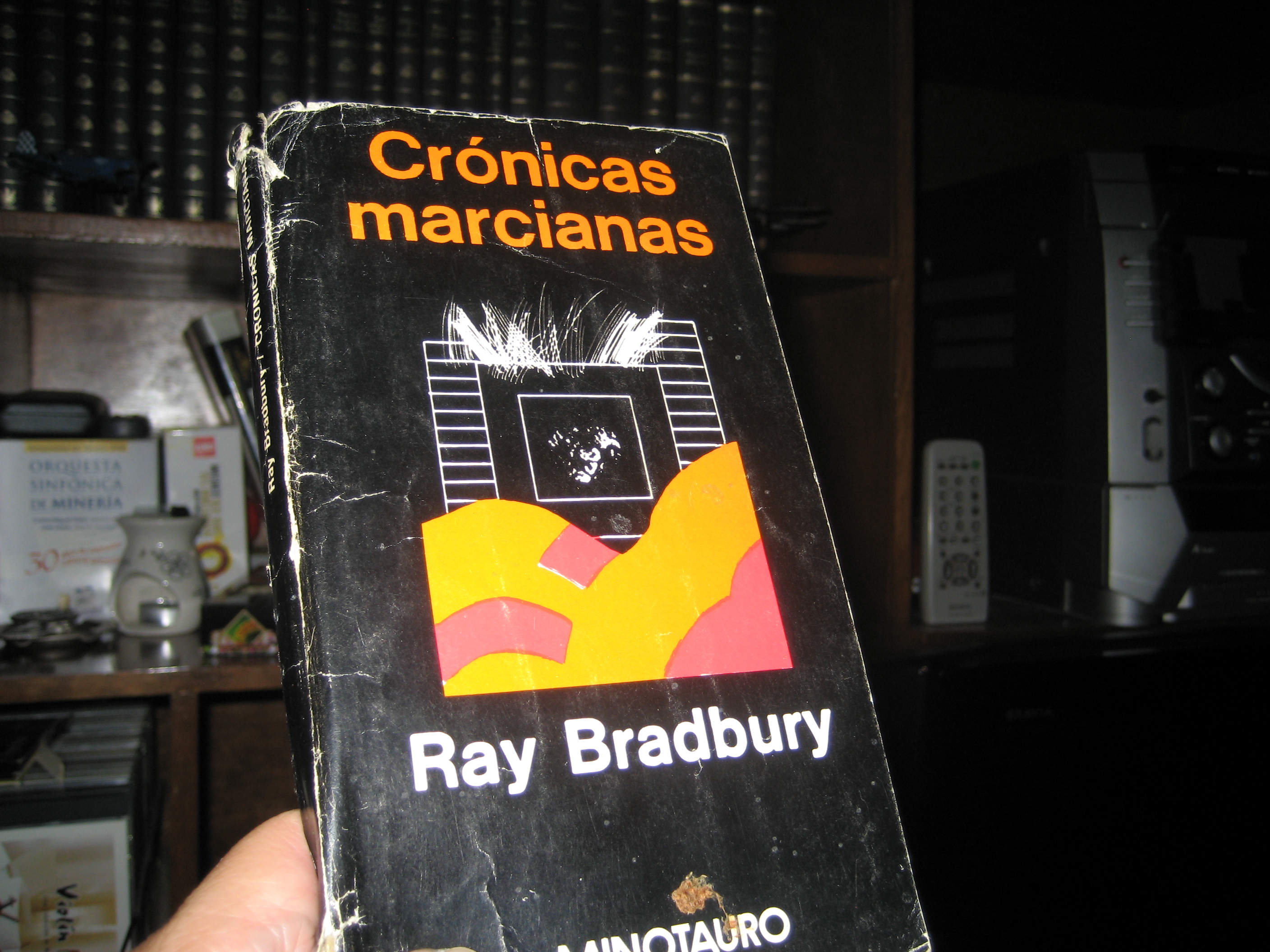 I was first introduced to Bradbury’s writing in 1989 during my first year in junior high school (here in Mexico that is the 7th grade; I was eleven years old then) by my literature teacher Ángel Molina-Aja at LOGOS School, a progressive institution in southern Mexico City; so now with the departure of the grand master of Science Fiction I can’t help but to think about Ángel and his possible motivations for making us read ‘The Martian Chronicles‘ of all possible books. It is pretty obvious now that his intention was to engage us in literature (prior to ‘Chronicles‘ we read ‘The Hobbit‘) and to make us read something that would in turn make us want to read more and so by reading we would open a world of possibilities to ourselves. His job as a literature teacher wasn’t just to make us learn about literature but to learn how to appreciate it for the values that leaves in our lives, whatever our own inclinations were. As I’ve written before, science fiction is a usual common denominator to us people working in science because we deal with imagining how to bring to life things and ideas that are currently nonexistent. Whether we create new materials with new applications or we come up with wacky mathematical theories that describe the intricacies of the universe, we all have to first set our imaginations free and believe everything is possible. In this way we are sometimes less pragmatical (albeit not necessarily more creative) than lawyers, business people and the like. Education should then be formative, not informative, in order to make an intellectually resourceful population in every area of the human and social development. Here in Mexico the average reading habit is less than 1 book a year per person! and with the upcoming presidential elections and the respective campaigns, it becomes obvious that a poorly read people is a very manipulable one. And the idea of an ignorant population kept in line by the ruling powers through alienating them from literature is the main theme of Bradbury’s other masterpiece ‘Fahrenheit 451‘, in which a fireman is a person who starts fires in order to destroy books (it is widely known by now thanks to this novel that 451 degrees Fahrenheit is the temperature at which common paper ignites itself). In ‘Fahrenheit 451‘ books are banned because they make people unhappy and unsettled by showing them a world of possibilities that they may or may not achieve, so it is safer to just satisfy people basic needs, which include 24 hours of personalized TV programming on every wall of their homes (sounds familiar?), and by doing so they wont question their leaders or their position in society. They just wont have dreams! That’s the bottom line. The many troubles of my country won’t be solved by people reading Bradbury, but if I was engaged into literature by ‘Chronicles‘, among other books from other authors, and by that engagement I was able to discover the world of science and decide I wanted to become one, then the ripple or domino effect triggered by reading, reached its goal; a goal set by my teachers, to whom I will be always most thankful. I wish I could post a picture of my old copy of ‘Chronicles‘ but I guess it’s back at my parents place all worn out. I have to remember taking a picture of it next time I visit my folks. Here is a picture of my old copy of the Spanish translation to ‘Chronicles‘ all worn out thanks to me and my sister, I guess. Thanks to my dad and his ninja-dropbox-skills for getting this picture for me!