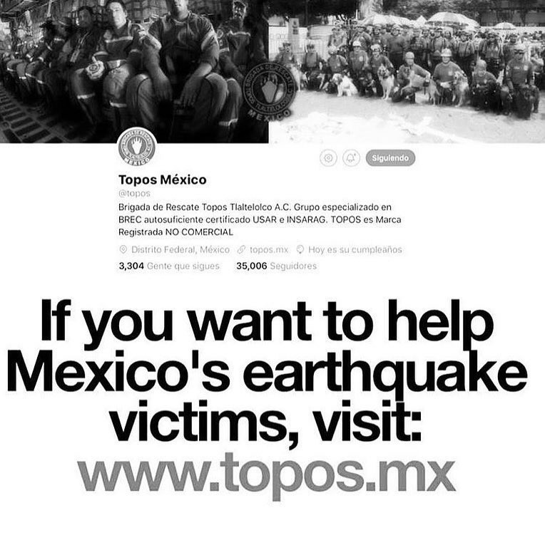 If you wanna help this is a great place to do so. The Topos (Moles) Brigade is an elite rescue team that is taking out people from the rubble not just during this disaster but anywhere in the world where they’re needed.