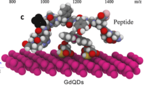 PM6 optimizations were employed in optimizing the GdQD as a whole (figure 1f) and the MM-UFF to characterize their union to a peptide sequence (figure 2) from which we observed somewhat unsurprisingly that Gd³⁺interacts preferently with the electron rich residues.