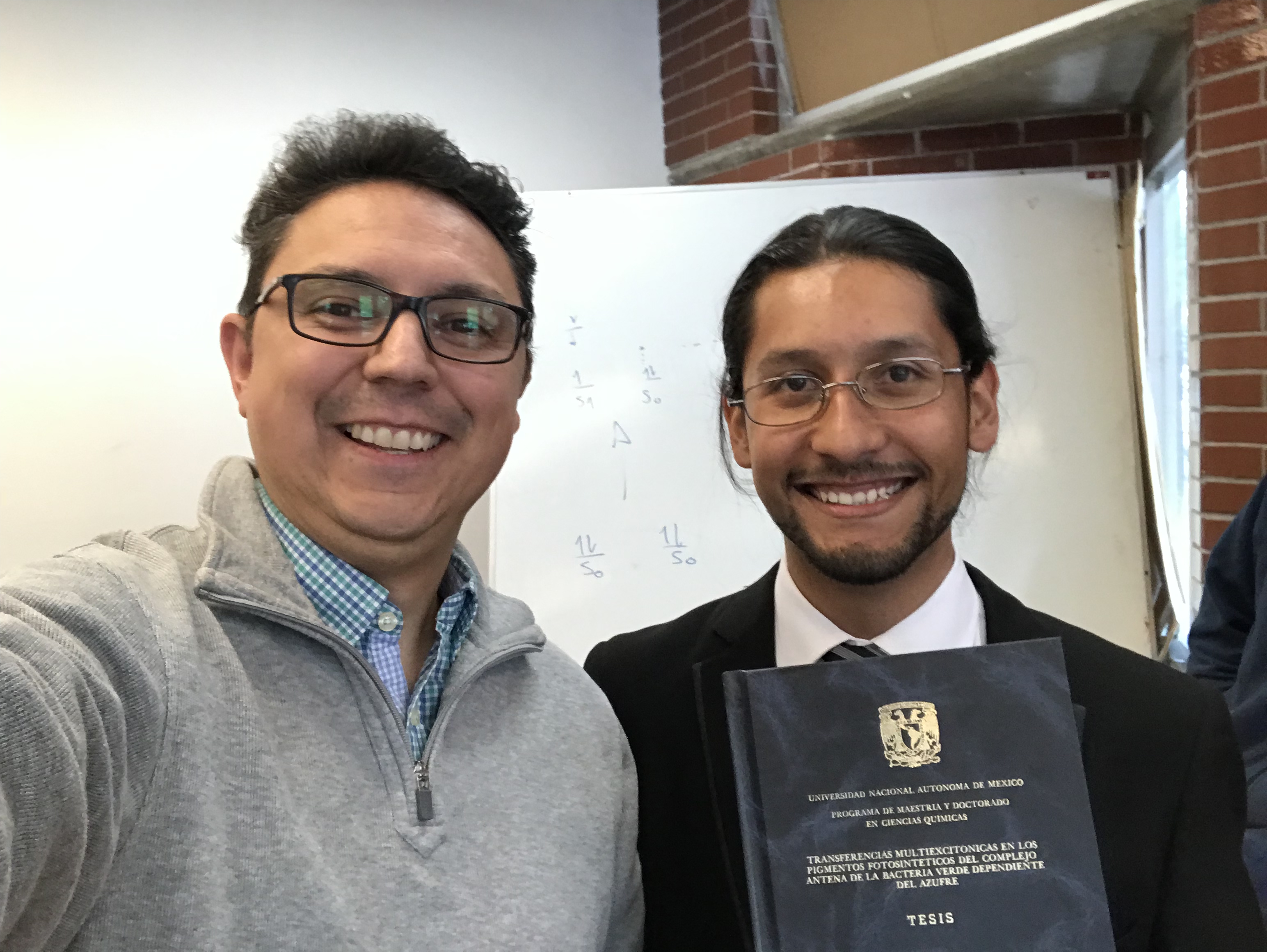 > joaquinbarroso posted: ” We celebrate the successful thesis defense of > Gustavo “Gus” Mondragón who has now completed his Masters degree and is now > on to getting a PhD in our group. Gustavo has worked on the search for > multiexcitonic states and their involvement in the excitonic ” >