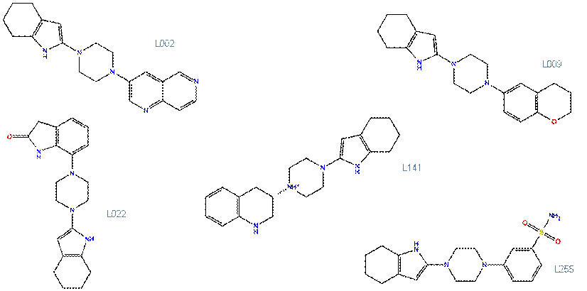 The title of his dissertation is “Molecular Dynamics Simulations of 5 potential entry inhibitors for HIV-1“. He performed 500 ns long molecular dynamics simulations of the CD4 – gp 120 proteins interacting with one or several molecules of various lead compounds with inhibitory properties. The leads were obtained previously in our group (by Durbis Castillo, now at McGill) from a massive docking library of ca. 16 million compounds, all having a central piperazine core (Fig1)