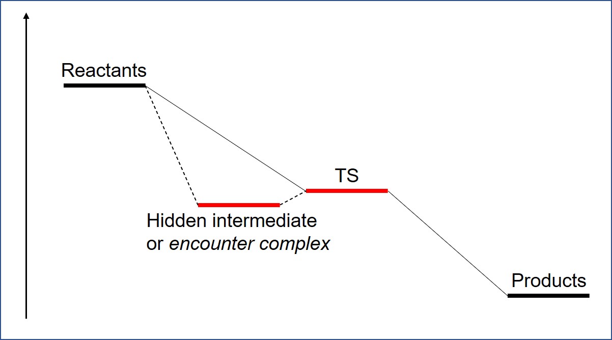 Caution is advised since the apparent presence of such a barrier may be due to a computational artifact rather than to the real kinetics taking place, that’s why an IRC calculation must follow a TS optimization in order to verify the truthfulness of the TS; keep in mind that in classical transition state theory, we’re ‘slicing‘ a multidimensional map along a carefully chosen reaction coordinate but this choice might not entirely be the right one, or even an existing one for that matter. I also recommend to change the level of theory, reconsider the reaction complex structure (because a hidden intermediate or complex may be lurking between reactants and TS, see figure 1) and fully verifying the thermochemistry of all components involved before asserting that any given reaction under study has one of these atypical barriers.
