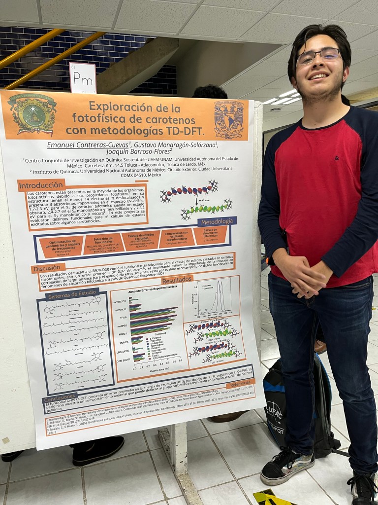 Regarding my lab, my students had an outstanding participation with their posters! Samantha Martínez has developed a python based tool to quickly assess the size of a large library of molecules. Miguel Porras laid out his research plan and first results for the inclusion of a library of molecules into an abasic site for a short DNA strand and evaluate their interaction energies. Cristian works also with exogenous DNA and showed his Eint calculations for natural and unnatural nucleotides. Humberto showed his results on Singlet Fission for carotenoids, whereas Emanuel worked a TD-DFT benchmark for their excited states. Ricardo Padilla is on the verge of publishing his work on a method to calculate polarons and bipolarons in PEDOT oligomers. Leo presented his work we recently published in Chem. Science. Finally, Gustavo Mondragón gave a talk on his last results published in JCTC and some unpublished results soon to be submitted.