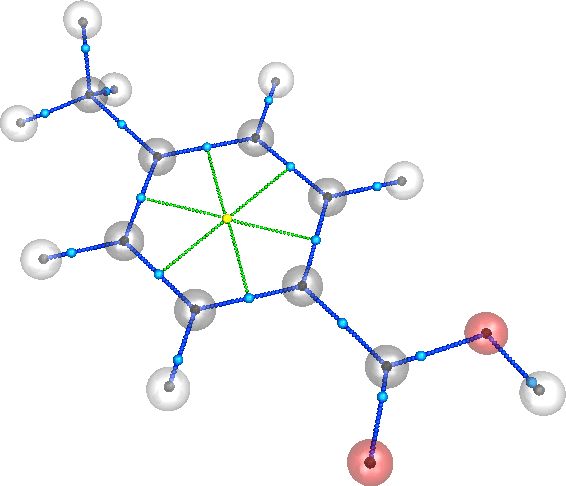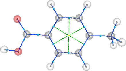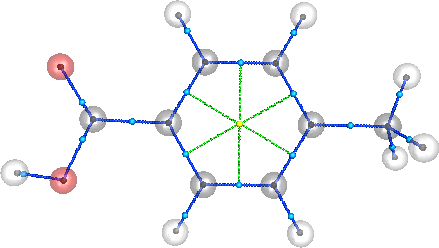 We use the file 4-Methylbenzoic_acid.wfn which is located in the wffiles repo directory located at ~/denstoolkit/wffiles/. In addition, as a working excercise, we will compute the critical points of this molecule.